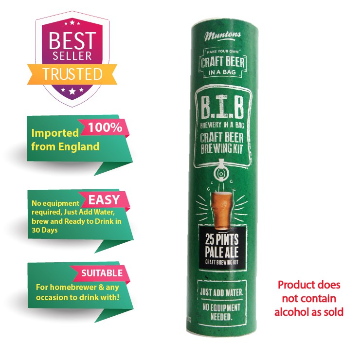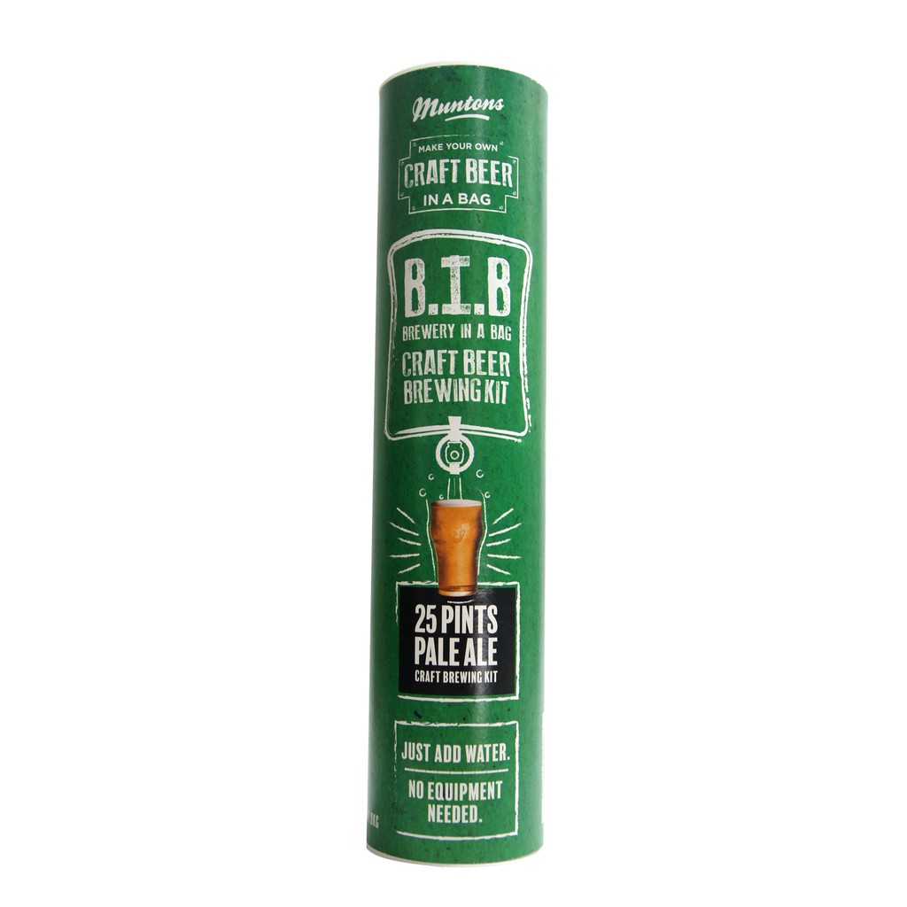 Muntons brewery in a bag. Brew in a bag craft beer these revolutionary new products make the brewing of beer at home as simple as making a cup of tea. Muntons brewery in a bag is the perfect introduction to brewing beer at home. The kit comes with everything you need with the exception of water and a liquid measuring device which could be as simple as having a pint beer glass. An ideal gift for the craft beer enthusiast this beer in a bag brewing kit offers a simple no fuss solution to home brewing.